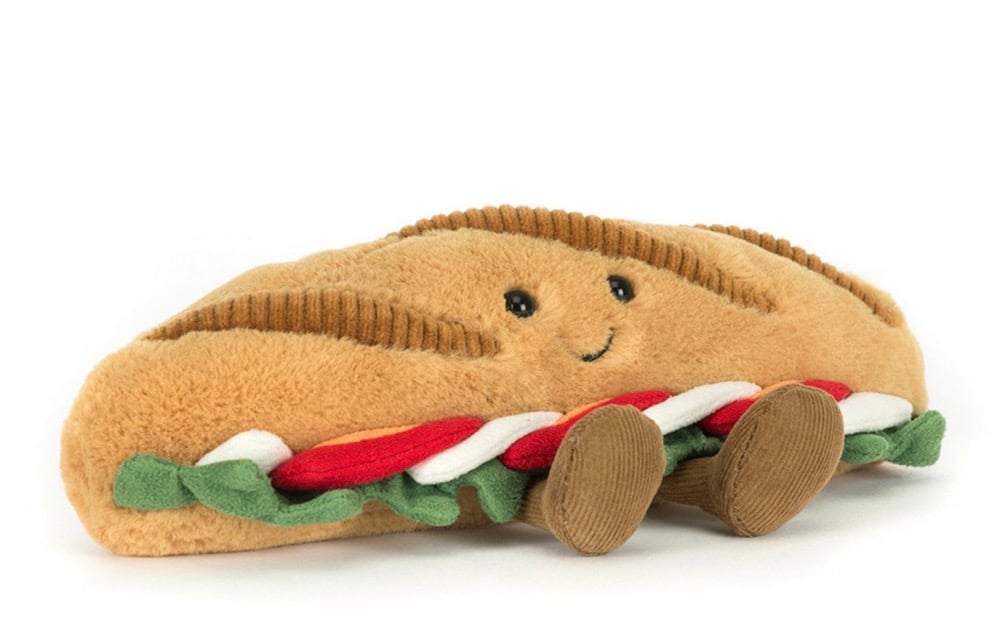 Some baguettes dream of Parisian cafés. Amuseables Caprese Baguette prefers a field at dawn, fitted with a tote bag and a keen eye. Car boot sales are her happy place – the thrill of the hunt, the joy of the bargain. Her most recent find? A vintage teapot for £1!