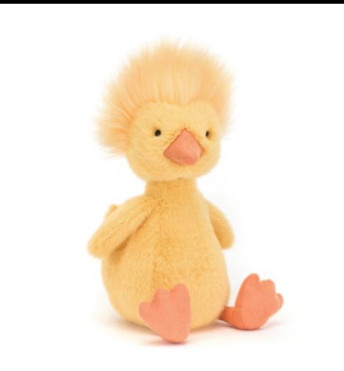 Dorit Duckling is the star of the pond in bold yellow fur. With a funky yellow hairdo, Dorit has little wings and a high tail. With a soft orange beak and matching long legs, this duckling loves going for a waddle