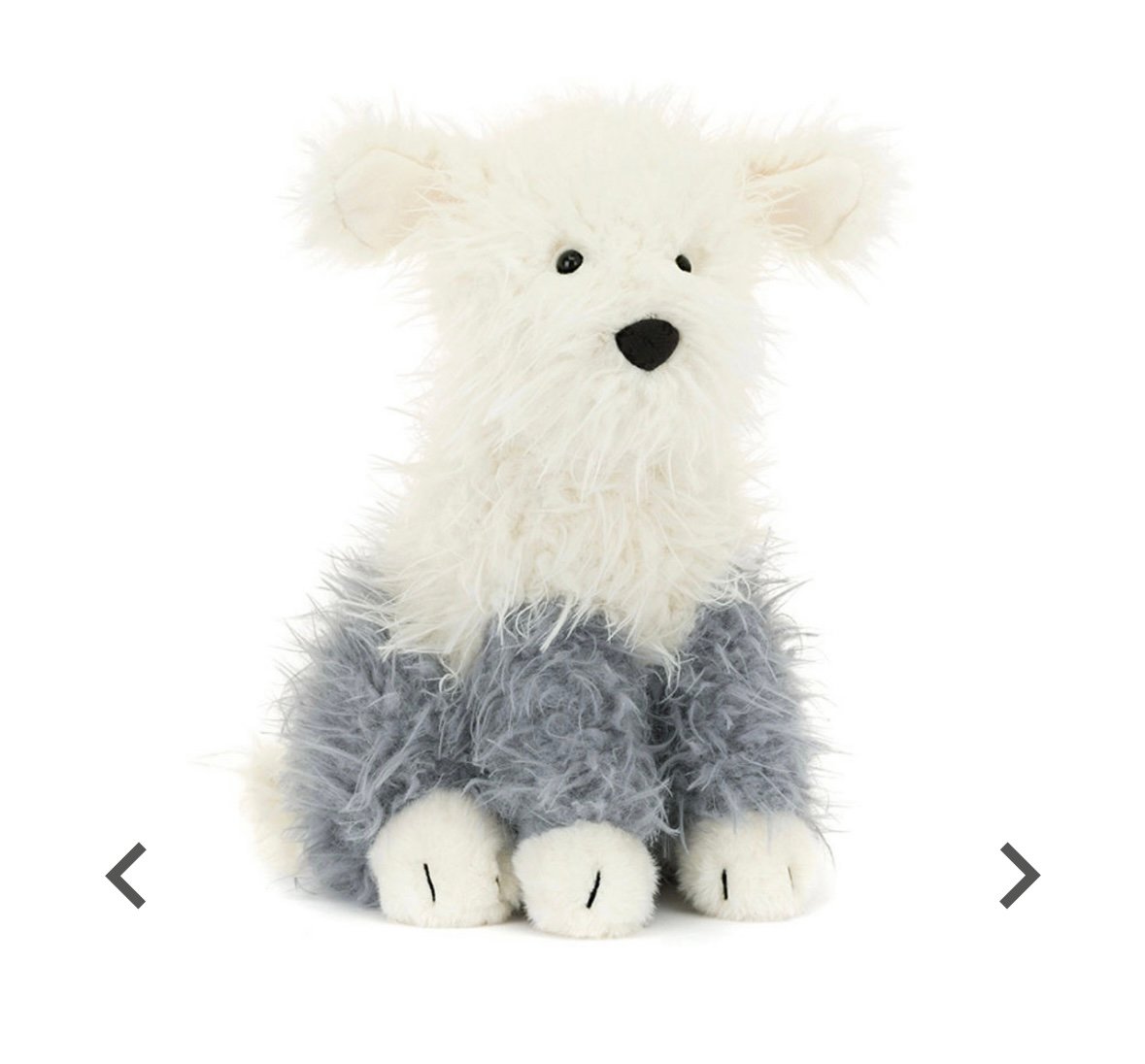 Ewert Sheepdog is here to play, round up joy, and share cuddles! In long, textured cream and grey fur with bright eyes and long tail, Ewert has stitched paw detail and a big, boopable black suedette nose. The perfect gift for dog lovers of all ages!