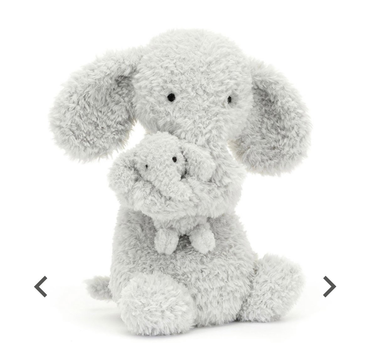 Huddles Grey Elephant is such a sweet gift for parents and tots alike. Cuddling their own tiny baby, this dove-grey elephant is wonderfully ruffled, with round, folded ears, a gently curved trunk, embroidered eyes and a cheery short tail.